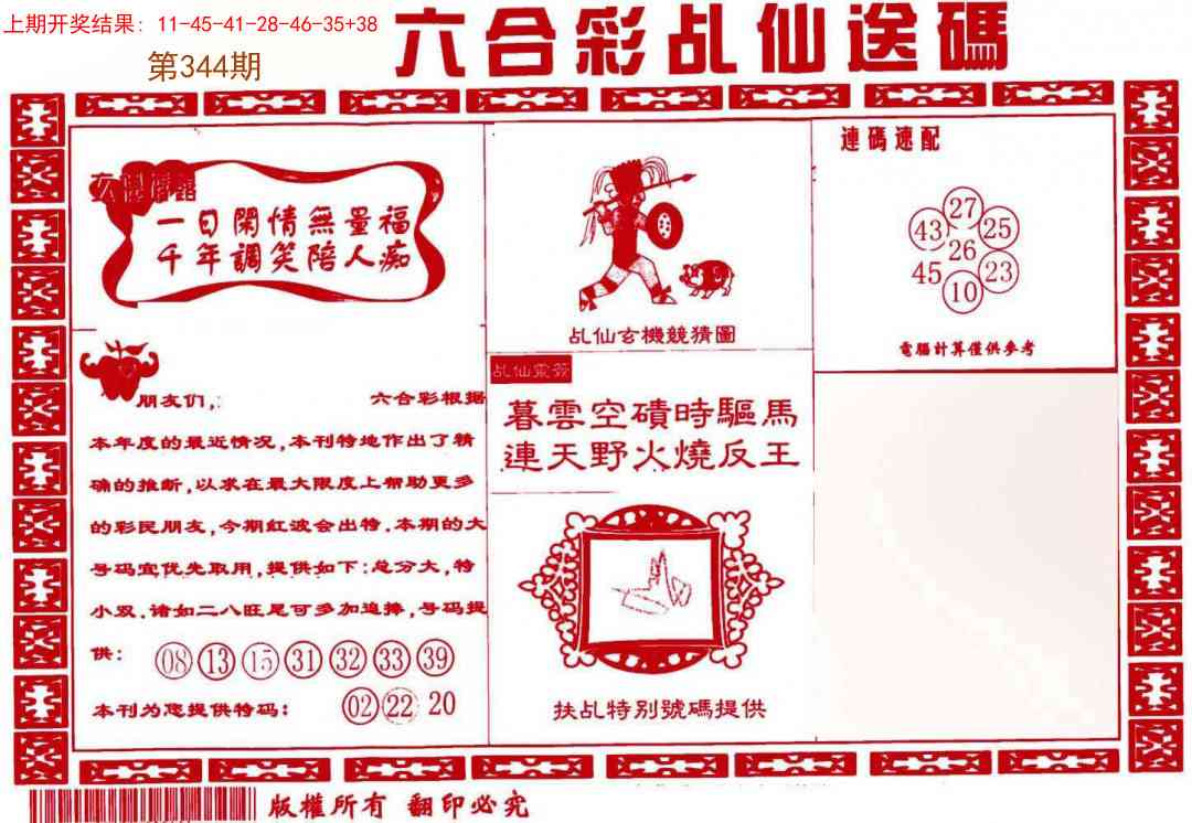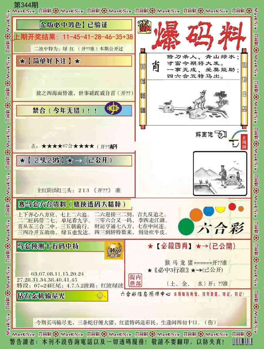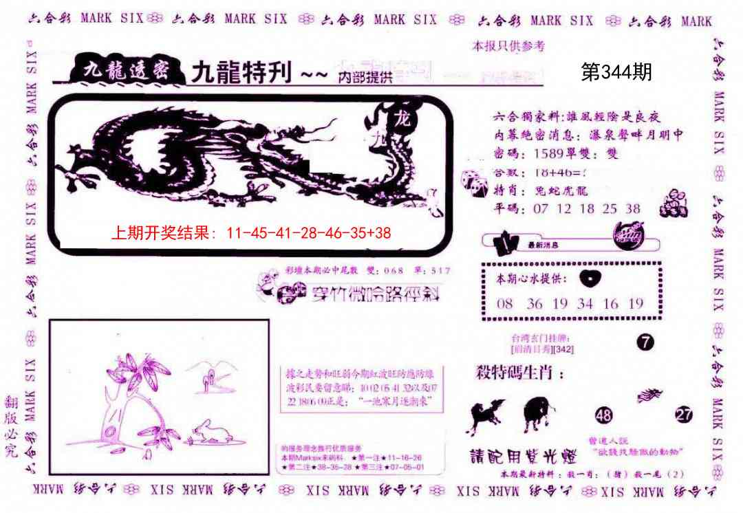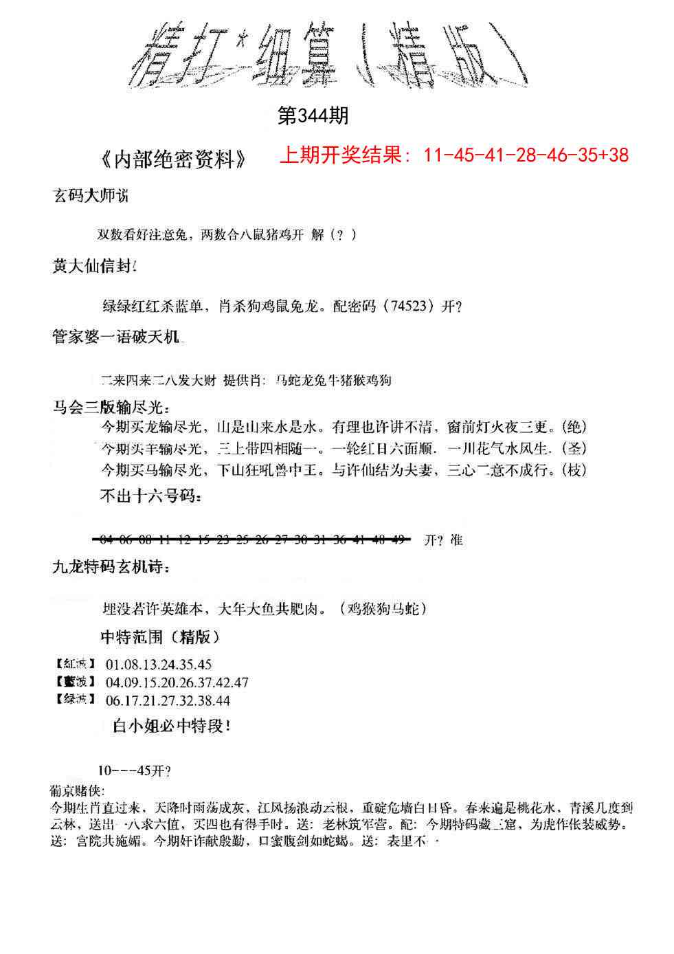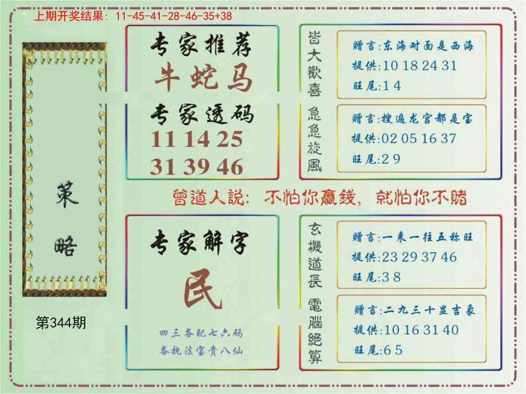 344期:【正版三中三】《3组3中3》内部传真√ 【正版三中三】