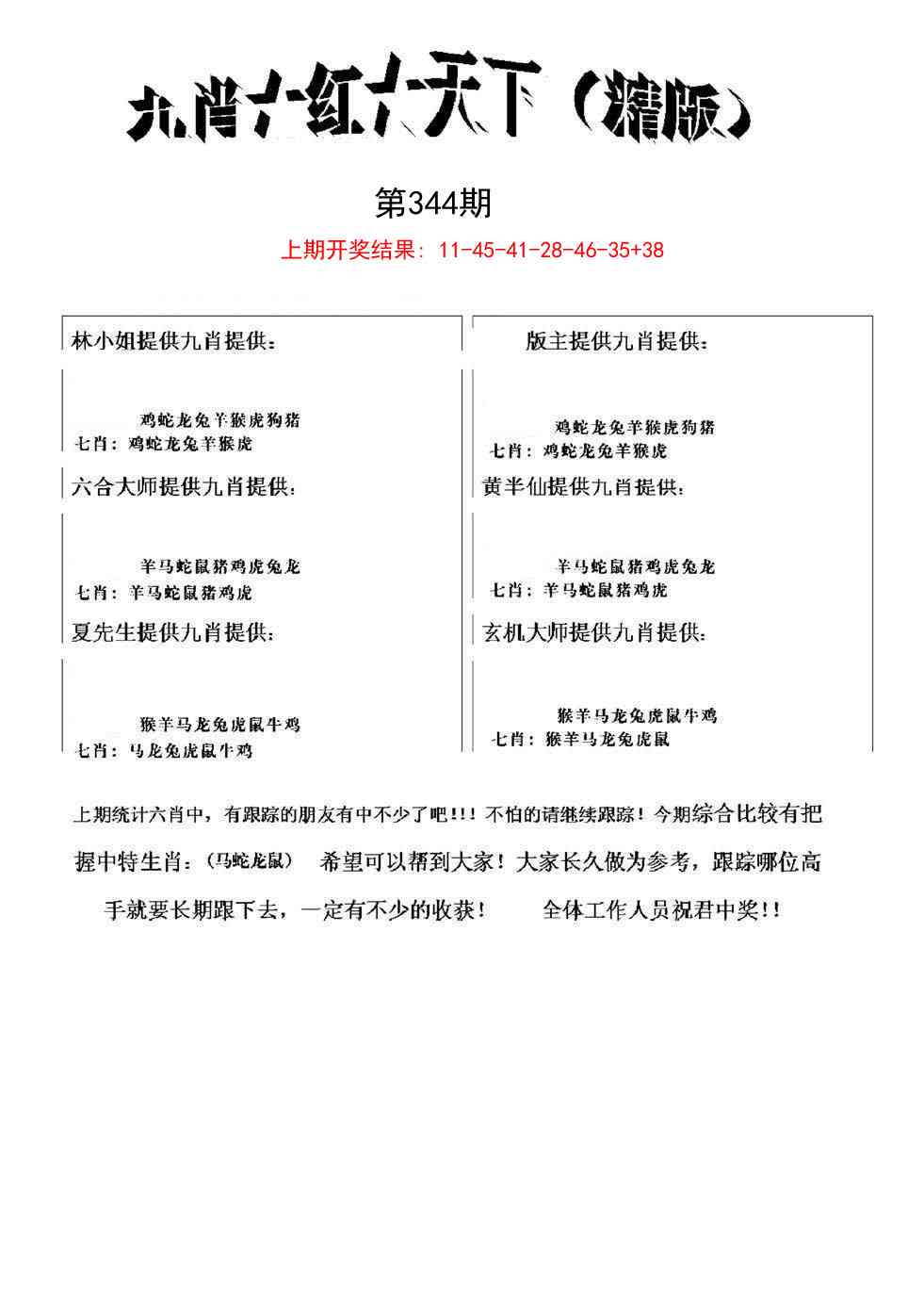344期:【预测先知】《二肖中特》独家发表√ 【预测先知】